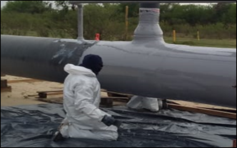 Aplicacion de recubrimientos (recoatings) epoxi, poliuretano, zinc, bituminoso y otros sistemas solicitados por el cliente, extendiendo la vida útil de las estructuras. colocación de mantas / Revestimiento de juntas: Field Joint Coating. Normas ASTM D4417, SSPC-PA 2, ASTM D4541, ISO 21809, SP0169